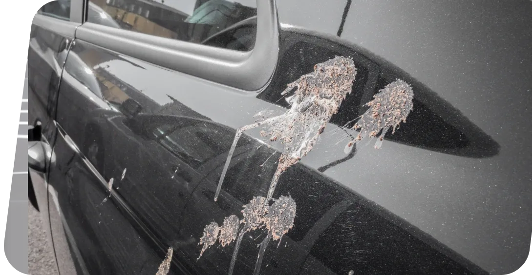 Bird droppings causes acidic etch by breaking down the clear coat cause permanent damanges.